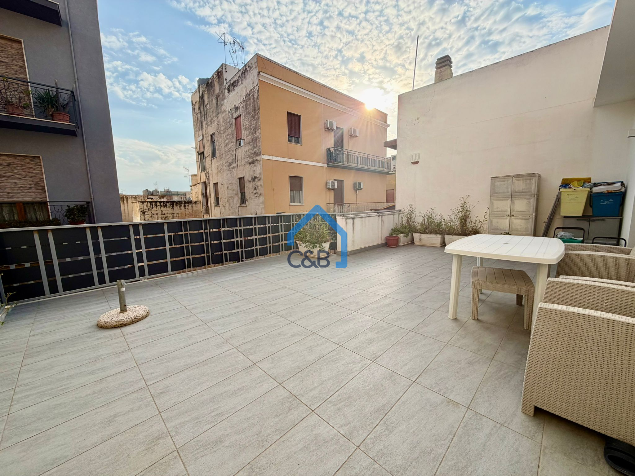 In una traversa della Via Argenteria, esattamente in Via A. De Stefano, proponiamo in vendita un appartamento sito al secondo piano di un mini condominio non fornito di ascensore. L’immobile di mq 95ca, ci compone di ingresso-soggiorno, ampia cucina-pranzo, camera matrimoniale, bagno, cameretta singola e veranda chiusa a vetri con infisso in alluminio adibita a riposto-lavanderia. Completa la proprietà una terrazza su prospetto principale, a servizio della zona giorno, di mq 40.